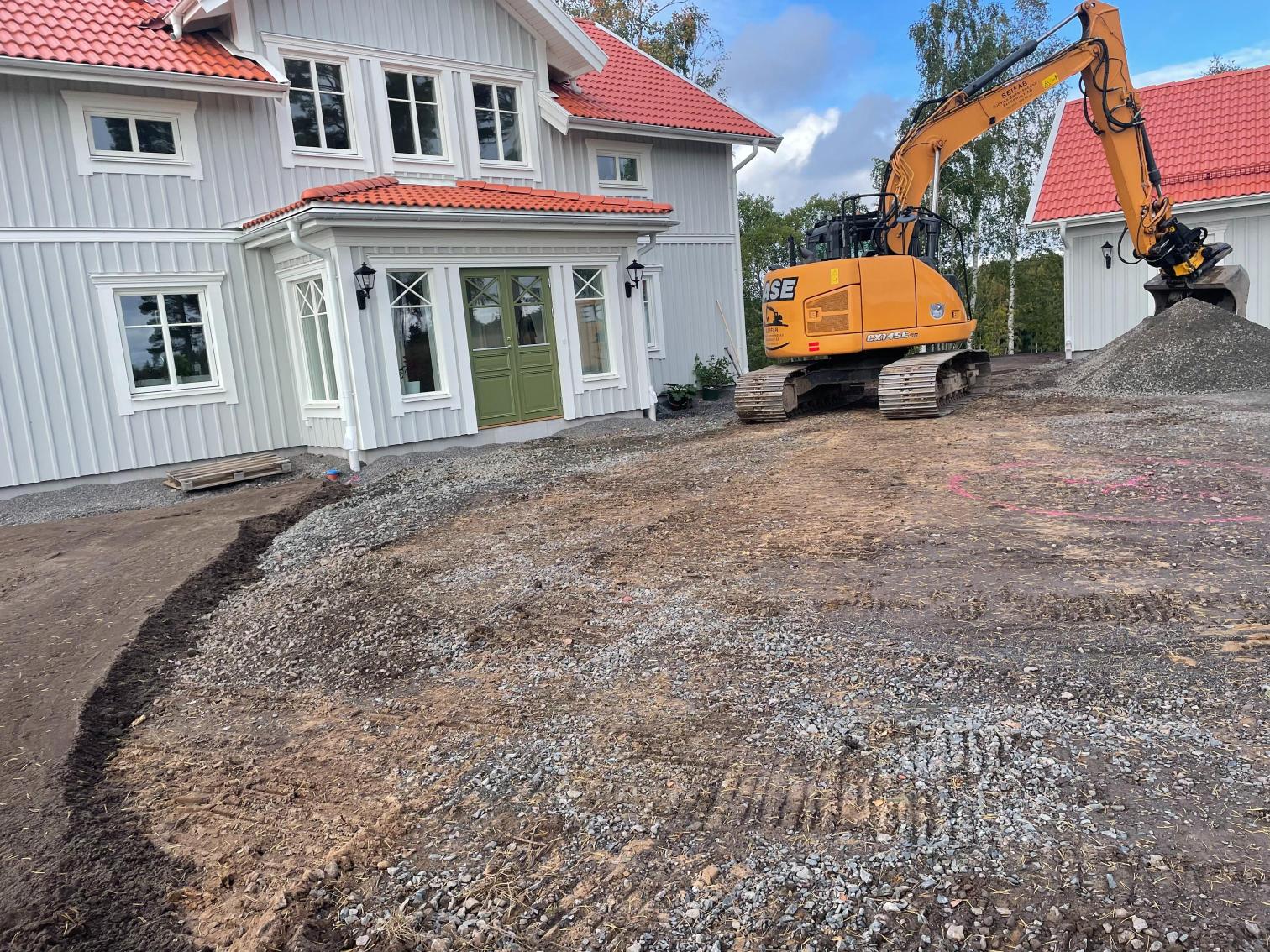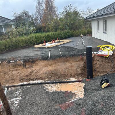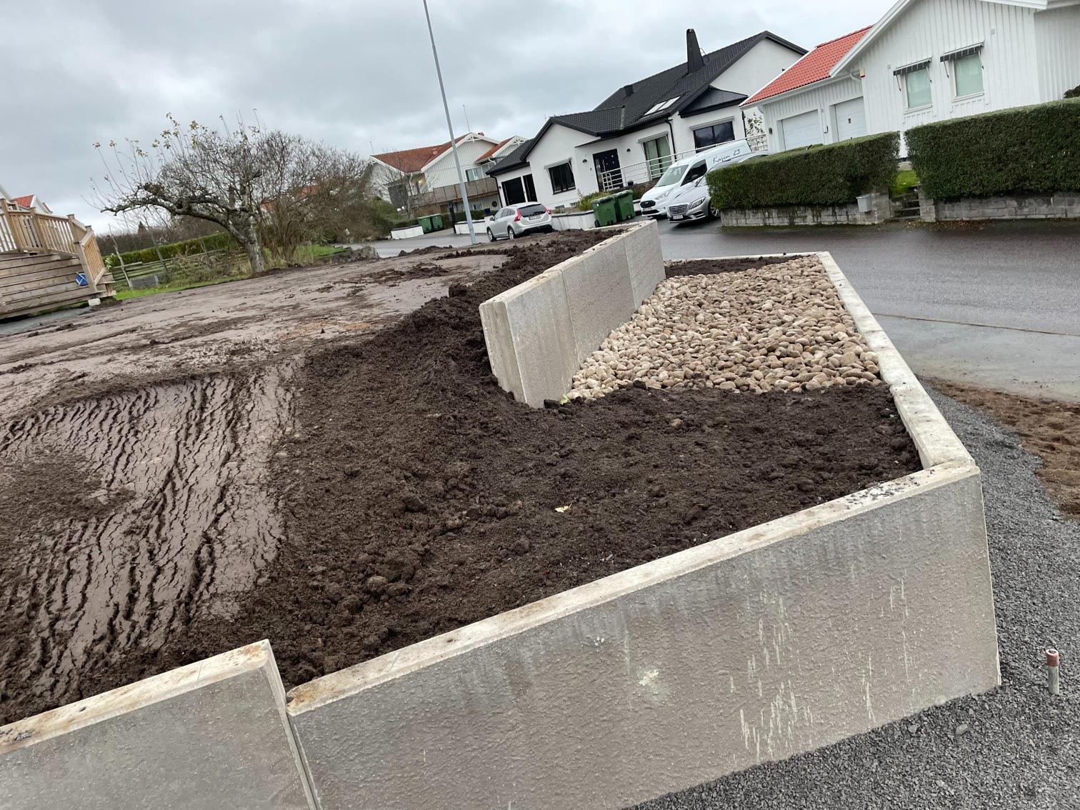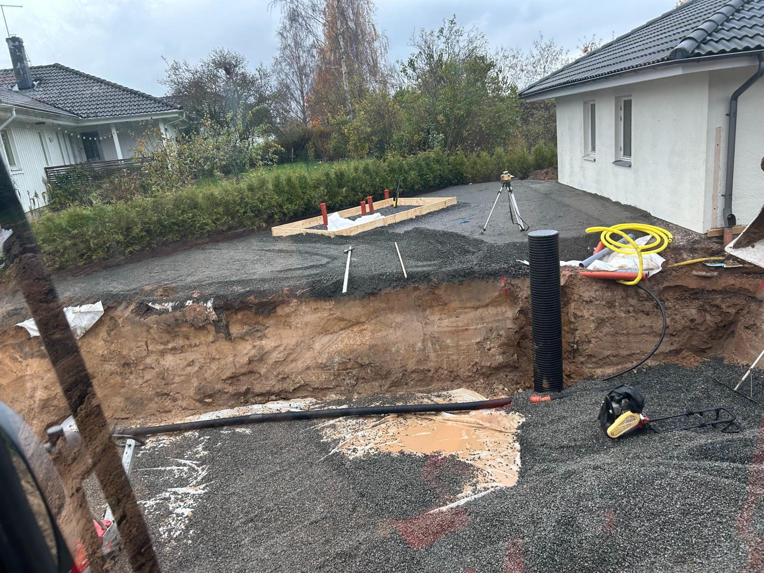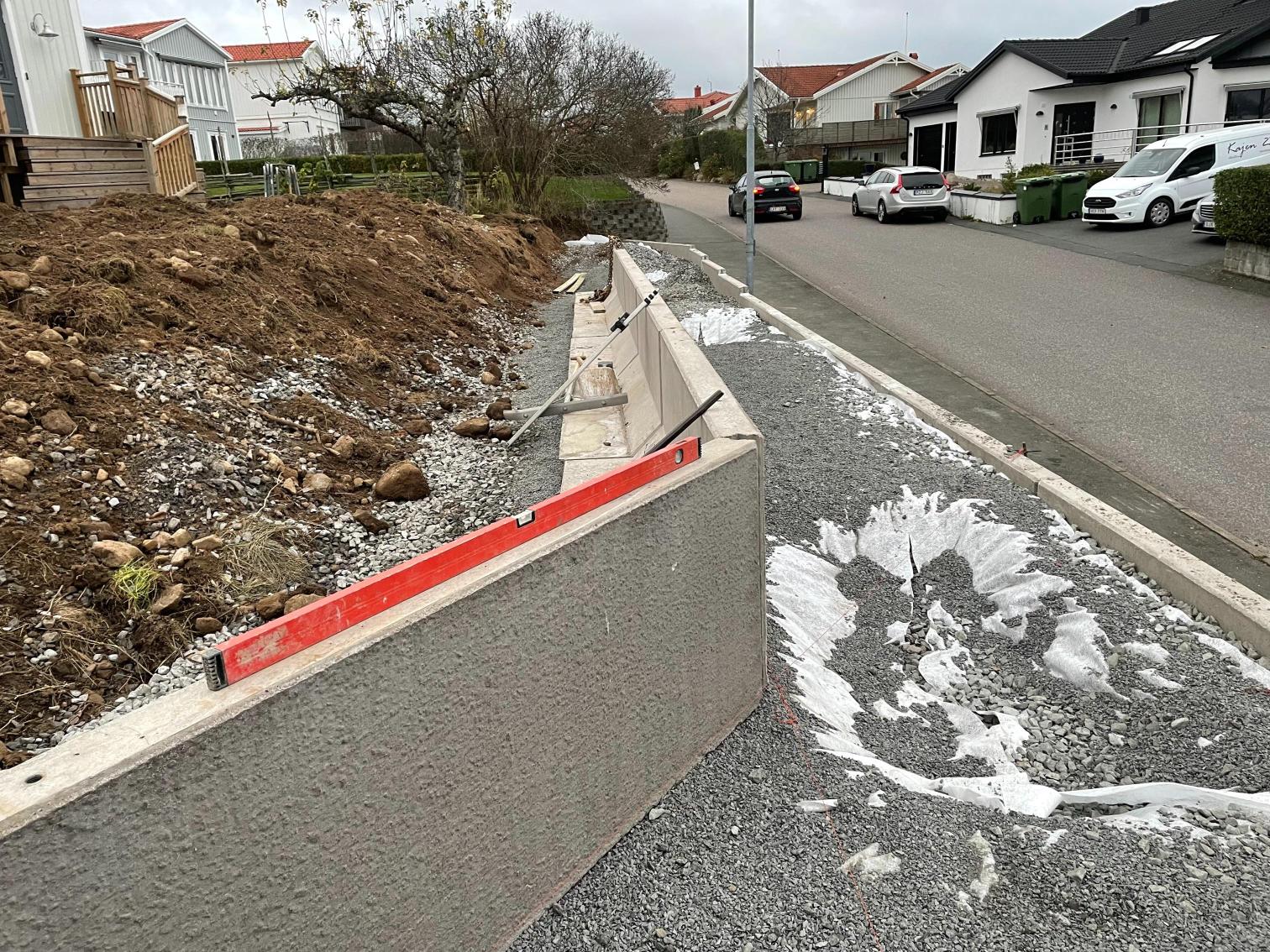 Jordvärme grävning, Sätta L-stöd, förbereda för marksten och murar