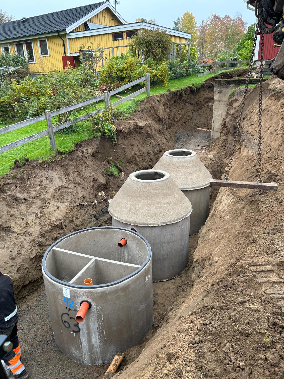 Markbädd med biomoduler för tre hushåll